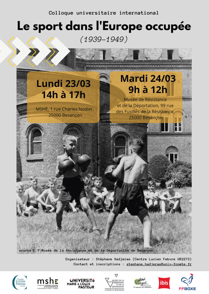 Dix ans après la journée d’étude intitulée « Le sport durant la Seconde Guerre mondiale en Europe », organisée le 3 décembre 2016 à Lyon par Paul Dietschy et le Centre d’histoire de la Résistance et de la Déportation de Lyon (CHRD), deux demi-journées d’études ayant pour thème « le sport dans l’Europe occupée (1939-1949) » sont programmées lundi 23 et mardi 24 mars 2026 à Besançon.